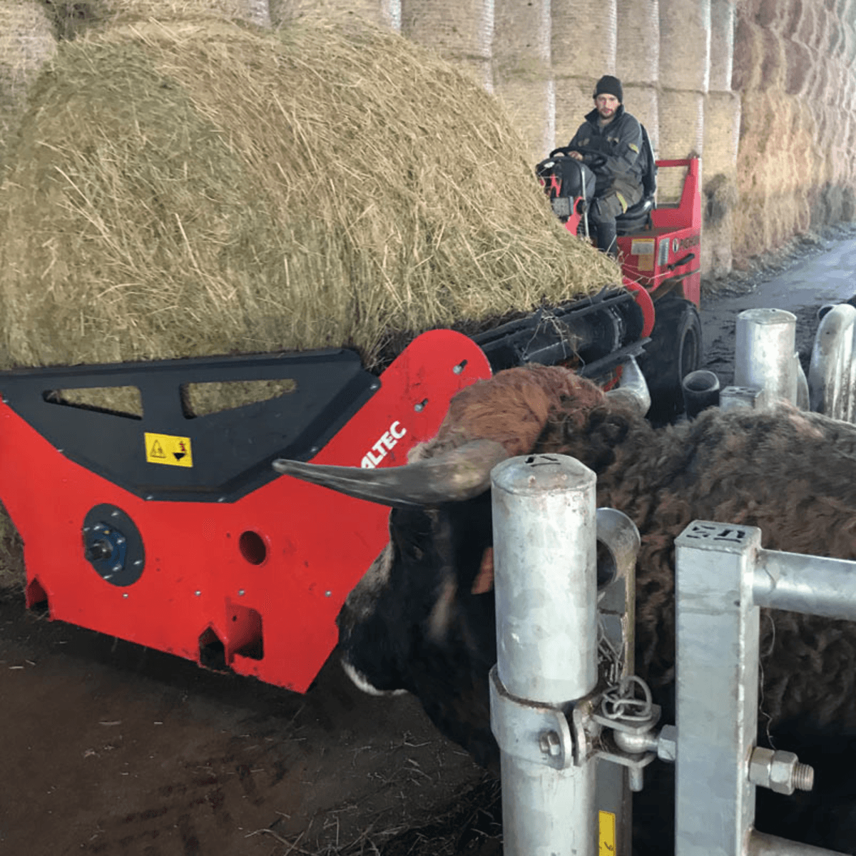 Pour manutention et déroulage de balles rondes et carrées, pique-botte 2 dents 150cm Ø40mm, entraxe 90cm. Equipée d’un système de blocage automatique de la dérouleuse une fois la machine levée. Distribution sur un côté de série ou gauche ou droite en option.