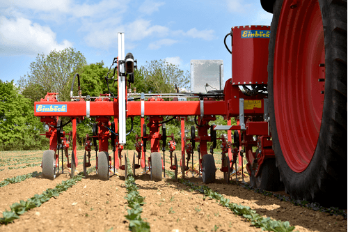 La bineuse arrière est équipé d'un système de guidage automatique par le 3ème point, un binage mécanique jusqu’à 6 % en dévers est possible. Au-delà, possibilité de compléter par un pré-guidage hydraulique en option.