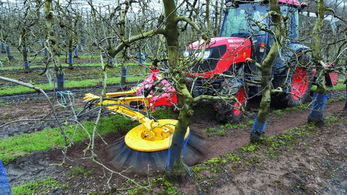 Sur 3 points avant ou arrière, brosse métallique Ø1100 mm avec fibre acier enrobée de caoutchouc. Système de compensation par ressort pour tenir la brosse.