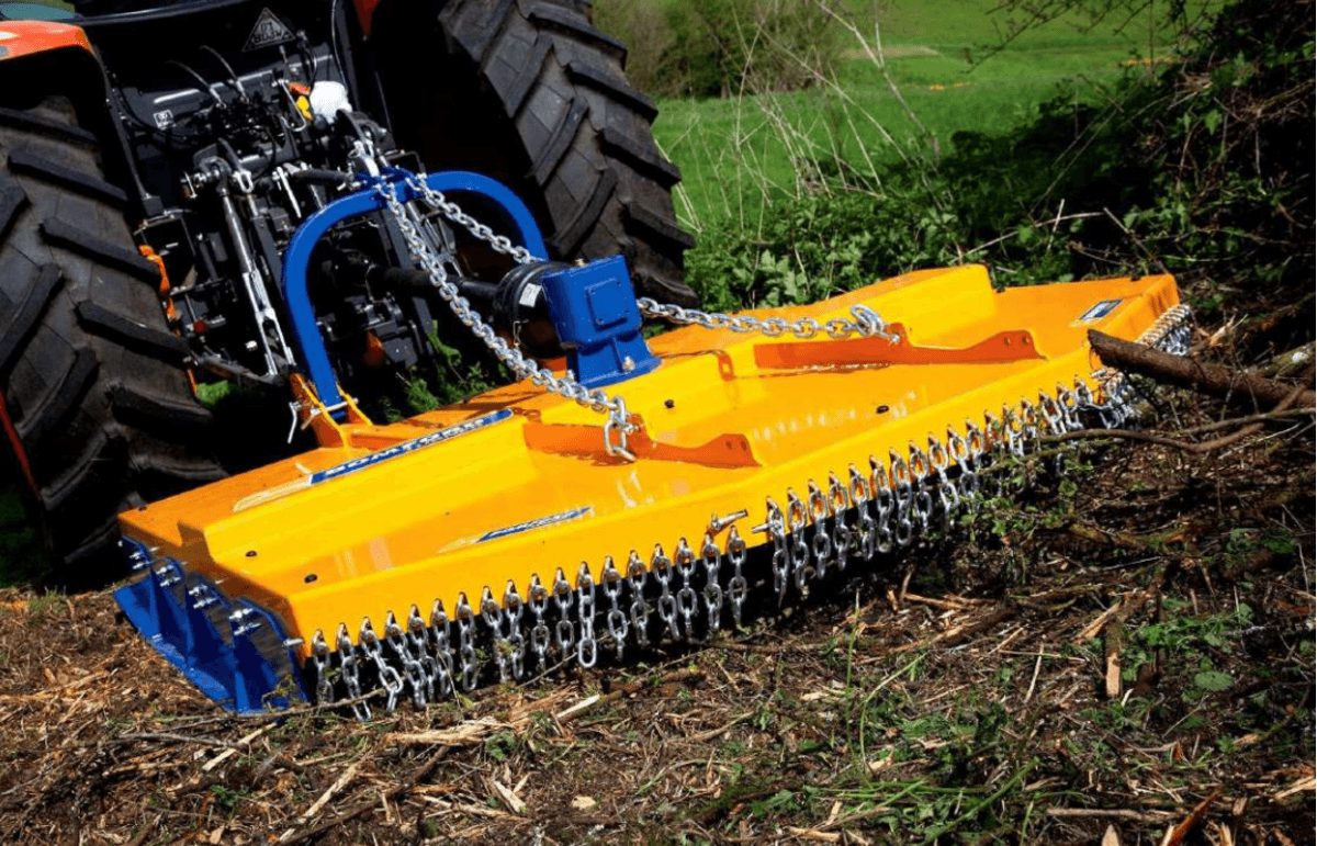 Une gamme de gyrobroyeurs à axe vertical semi forestier équipé de lames ou de chaînes de grade 80 de qualité élevée et de patins réglables pour tous types de débroussaillage. Pont supérieur de 10 mm avec supports de renforcement, 540 tr/min avec embrayage à friction de série, réglage simple de la hauteur, hauteur de patin réglable de 50 à 100 mm, chaînes de levage puissantes, taille de chaîne de 18 mm.