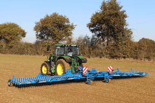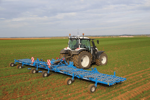 Le suivi de relief du sol est optimal. Le réglage hydraulique de la pression des dents sur le sol de 100 g à 5 kg s'effectue à partir de la cabine du tracteur. La conception du module de dent individuel assure une amplitude de fonctionnement permettant de travailler les cultures en planche ou sur butte. Le montage de la dent Ø 8 mm est conçu pour obtenir le meilleur compromis entre rigidité latérale et vibration afin de garantir un étrillage de qualité. Disponible de 6,20 à 15,40 m.
