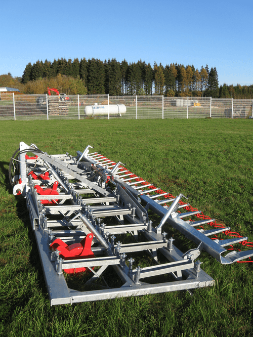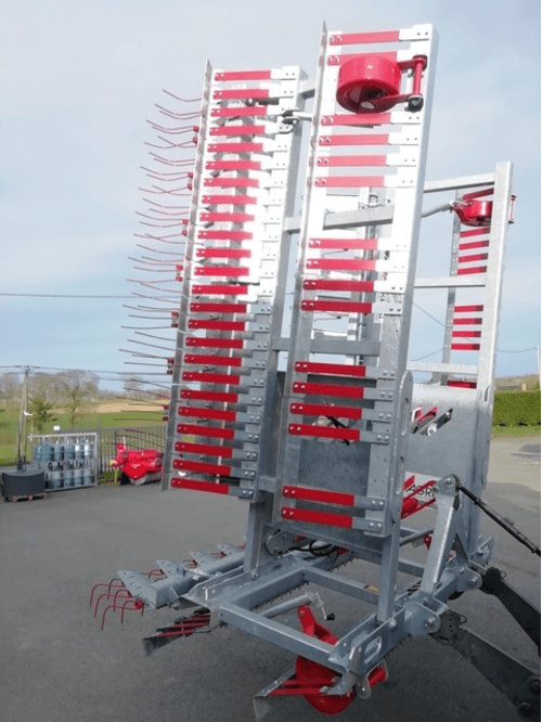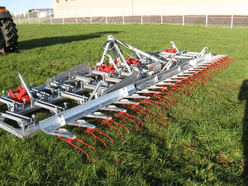 - 1 - RASETTES ET REGENERATEURS DES PRES : châssis entièrement galvanisé à chaud, assemblage mécanosoudé de tôles haute résistance pliées à froid, repliable grâce à un vérin hydraulique double effet, hauteur des dents étrilles réglables, et différents équipements de série en fonction du modèle.
