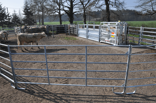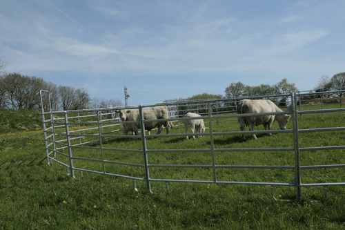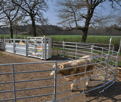 Barrière légère de contention pour bovins et chevaux permettant la réalisation simple et rapide de parcs mobiles de contention. Panel de contention fabriqué en tube ovale de 50 x 25 mm (extérieur) et 42 x 21 mm (intérieur). Entre tubes de 21 cm et hauteur de 1,57 m. 3 longueurs de panel possibles: 2,40 m, 3 m et 3,60 m.