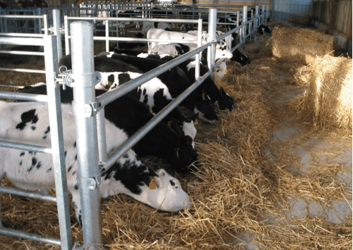 Barrière pour veaux jusqu'à 6 mois, partie arrière constituée en tube de 60 mm et partie avant réglable 49 mm. Panneau disponible de 3 m à 6 m.