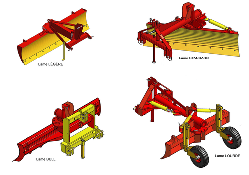 Les lames multifonction permettent de nombreuses applications. Adaptées pour les travaux de nivelage, nettoyage, remblayage, création et curage de fossés, terrassement et nivellement, elles se présentent en 4 modèles : LEGERE, STANDARD, STANDARD et BULL en fonction de la puissance du tracteur.