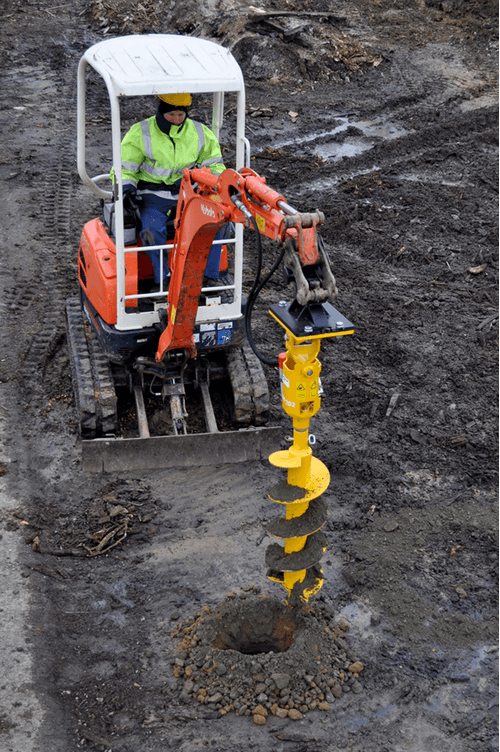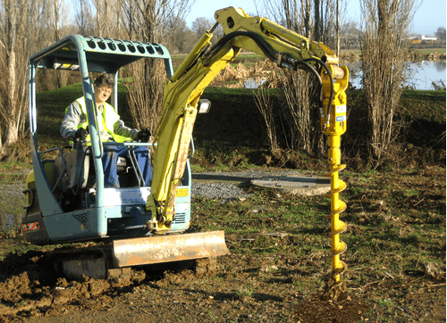 La tarière TRH pour pelle s'adapte sur tout engin hydraulique inférieur à 15 tonnes (mini-pelle, tracto pelle ou pelle).