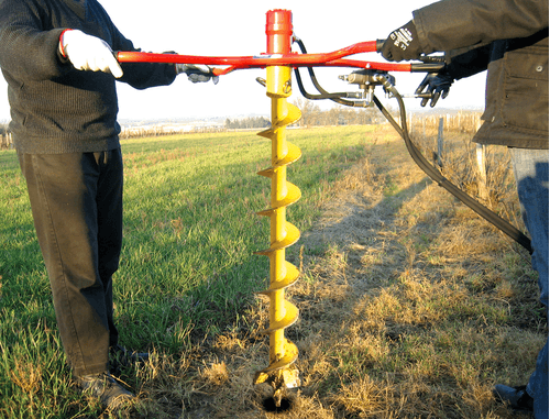 La tarière TRH MANUELLE est d'une utilisation simple à 2 personnes avec moteur hydraulique de tout type d'engin (débit minimum 20 L/min). Grand choix de vrilles, longueur 1,10 m et diamètre 100 à 250 mm et nombreux accessoires pour ancrage type : ANCREST, FENOX, 2 ERGOTS LEBEC - AMARAGRI.