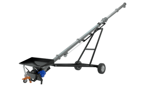 Vis Ø 160 mm à double spire sur le 1er segment permettant un débit très important. Trémie 2,50 m de largeur, réglable en hauteur. Attelage remorque renforcé. Roue jockey. Modèles disponibles en version peinte polymérisée au four ou galvanisée. Autres modèles disponibles en Ø 220 ou 325 mm et longueur 9, 12, 15 et 20 m en entraînement électrique, hydraulique ou par prise de force.