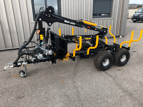 Découvrez notre remorque forestière de 1,5 tonne avec une grue de 4,1m. Légère mais robuste, notre remorque est idéale pour les quads, ou les micro-tracteurs. Sa grue est équipée de 4 vérins avec une double crémaillère et un bras télescopique. Pour le montage avec quad, nous proposons en option une centrale hydraulique thermique équipée d'un moteur HONDA GX