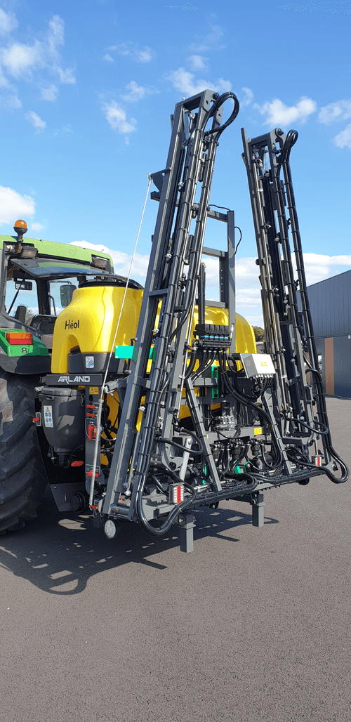 -ACS (Rampe acier à repliage hydraulique à la verticale) : Largeur de travail 15 ou 18 m. Cadre central avec suspension mécanique