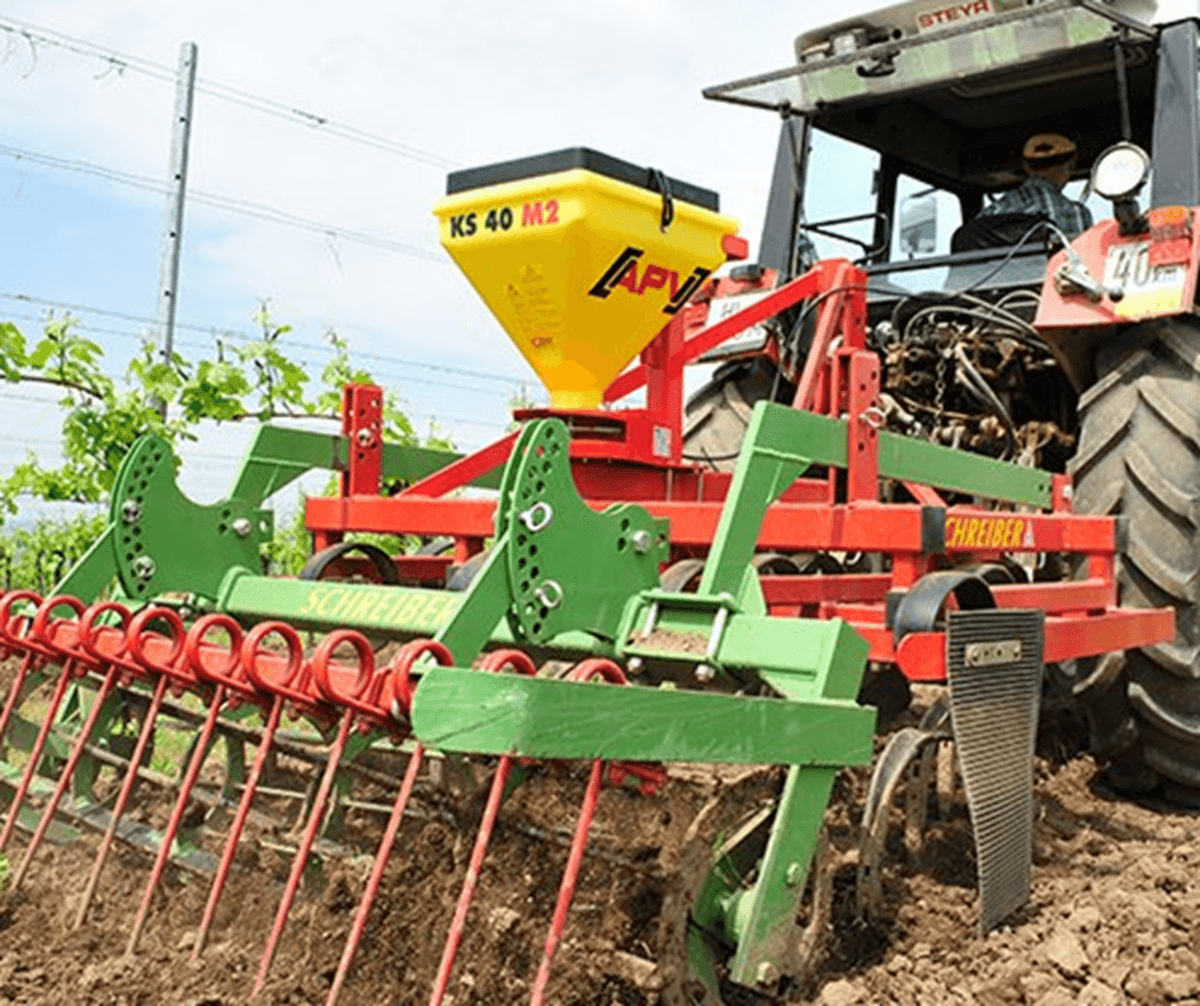 KS 40 M2 est un épandeur à disque conçu pour des petites largeurs de travail. Avec son poids faible (19 kg vide) et ses dimensions, il est polyvalent et permet la distribution de graines d’herbe, des couverts végétaux et des granulés anti-limaces... La trémie avec une capacité de 40 L distribue les produits à épandre qui sont amenés vers la vanne à l’aide d’un agitateur dont le débit se règle en continu et sont répartis uniformément sur toute la largeur de travail. Un boitier de commande permet depuis son siège conducteur de régler le régime du disque d’épandage et la largeur de travail.