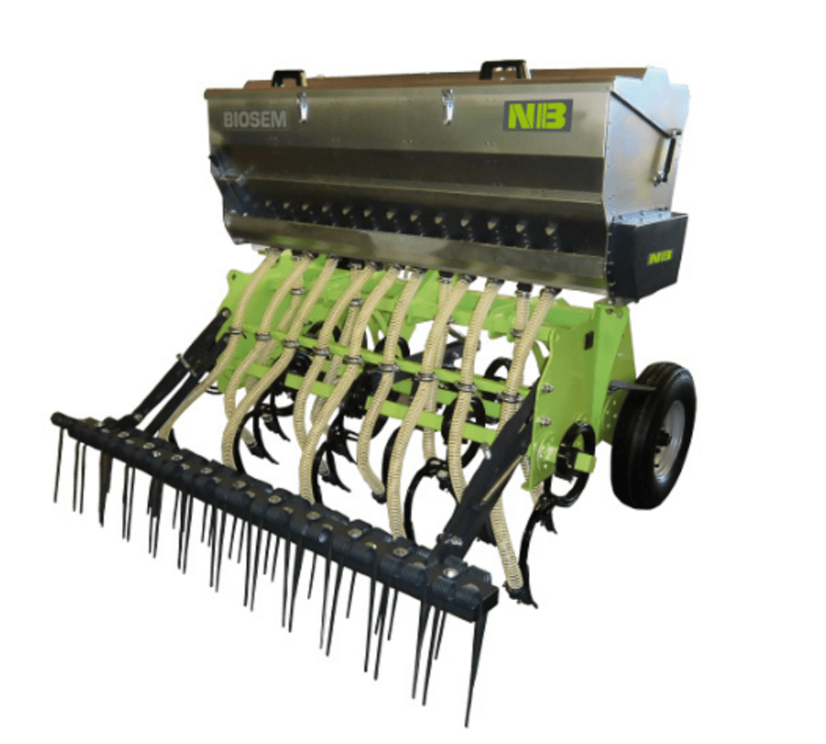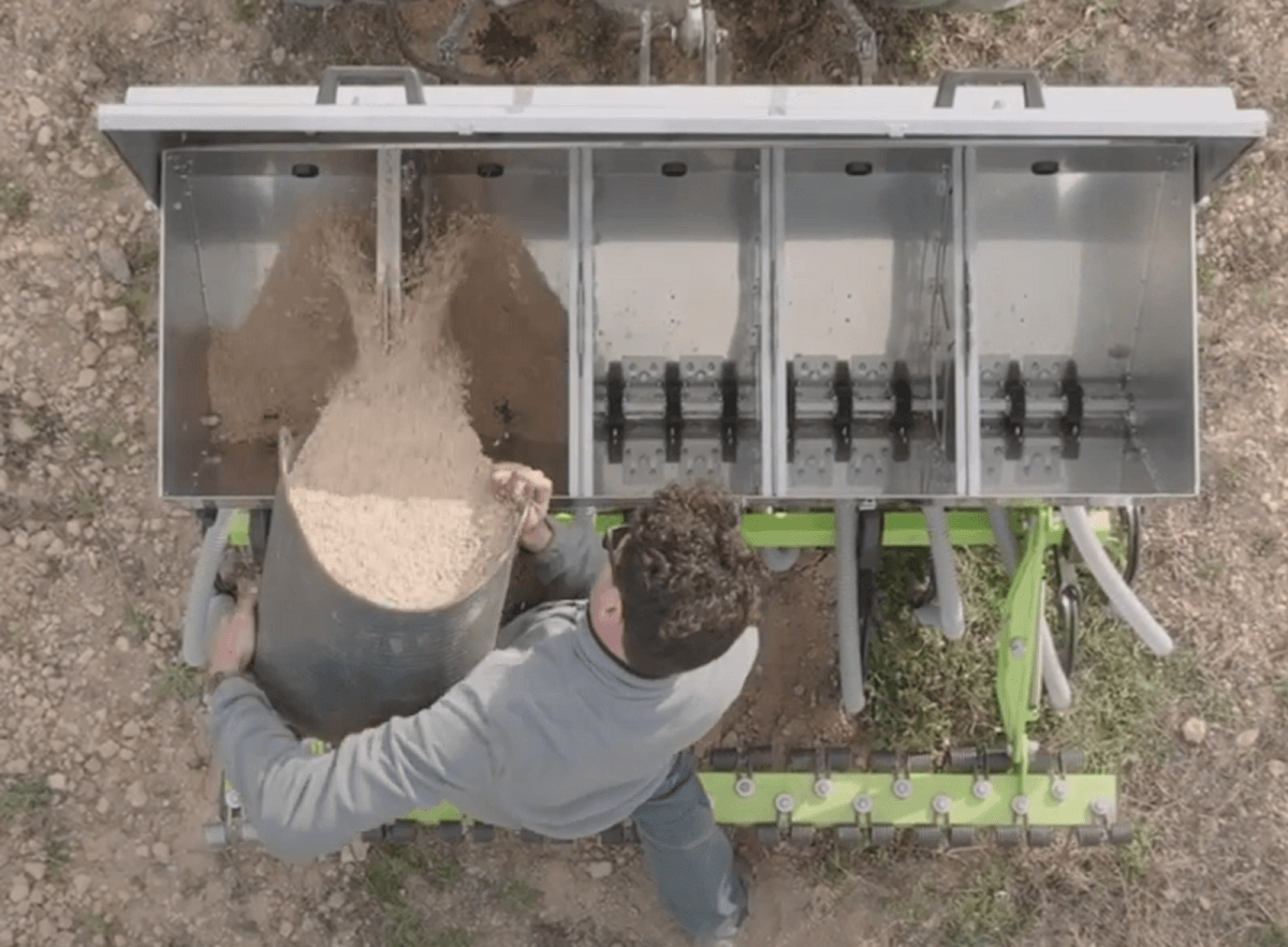 Le semoir de couverts végétaux BIOSEM est équipé d’une trémie en fer zingué avec 5 compartiments séparés pour semences en simultanées. Equipé d’un moteur avec régulateur hydraulique pour contrôle de dosage. Principalement conçu pour les vignes et les vergers bio.