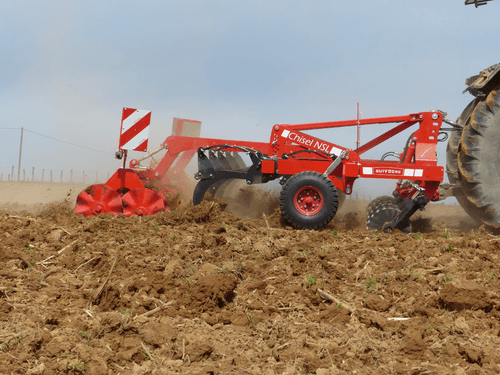 En option, une rangée de disques diamètre 510 mm permettant un affinage et une découpe des résidus.