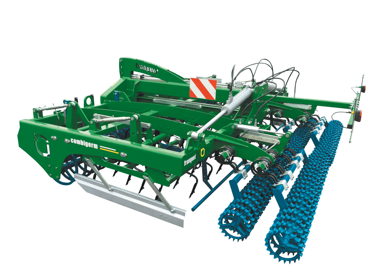 3 à 6m porté et semi-porté, 4 à 8m autoporté, 4 dents efface-traces, lame de nivellement à dents, 1 spire 420mm profil 30x20mm, vibroculteur 5 rangées de dents droites 32x12mm, 1 tube acier plein de nivellement 35mm, double rangée de rouleaux croskillettes 290mm. Structure, nivelle et émiette les labours. Raffermi parfaitement le lit de semence en profondeur. Affine et referme la surface en limitant la battance. Maintien l’humidité et assure les germinations.