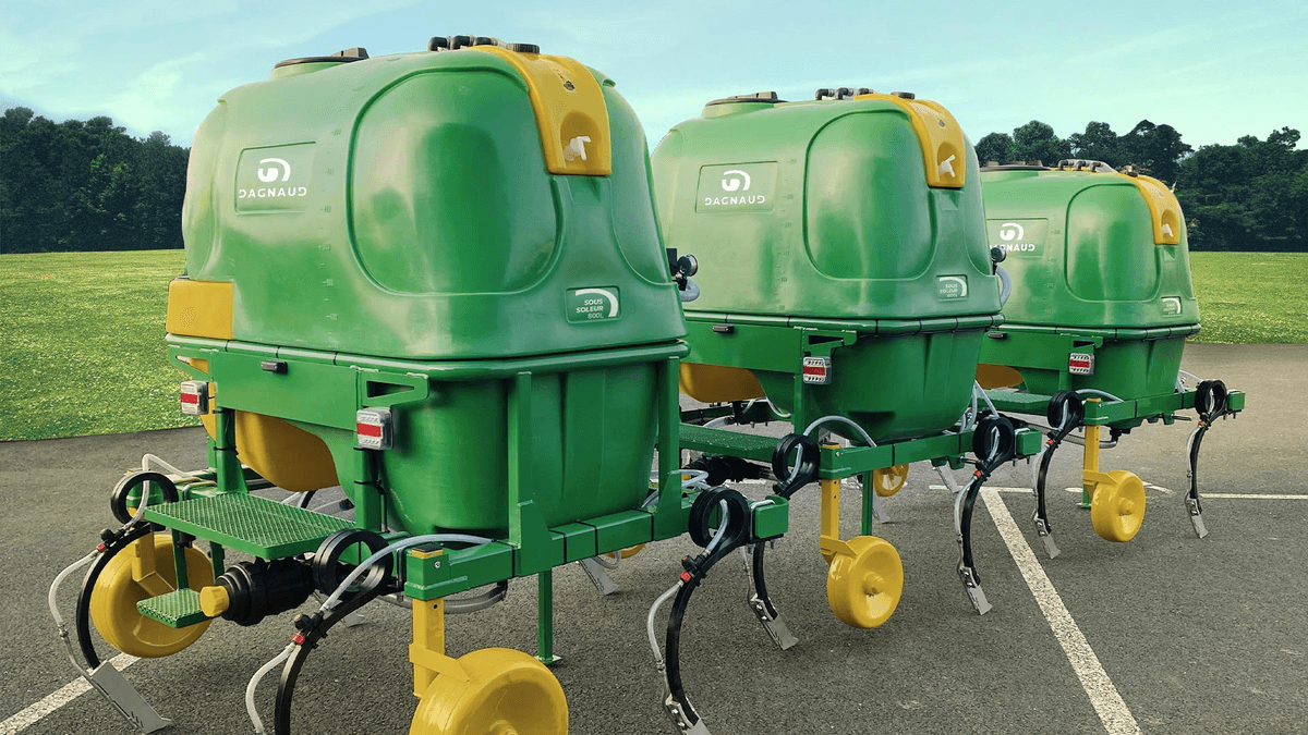 Une gamme de sous soleur vigne à partir de 2 m. De 4 à 6 coutres carbure et d’une capacité de 600 L, 800 L ou 1000 L. Réglage électrique de la pression, bec sous soleur jet anti goutte, roues de terrage réglables. Commande électrique 2 tronçons.