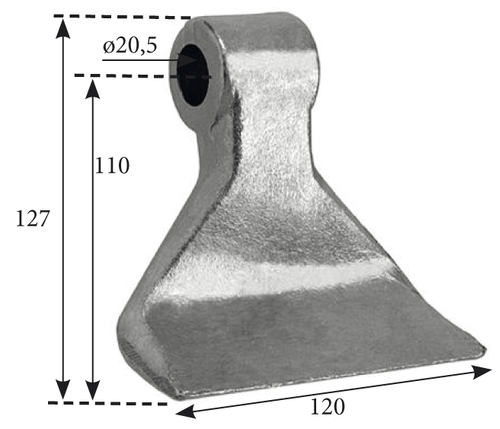 Marteau de broyeur. Longeur 1 : 85 mm. Longeur 2 : 40 mm. Alésage : 14,5 mm. Rayon : 95 mm. Poids : 0,700...