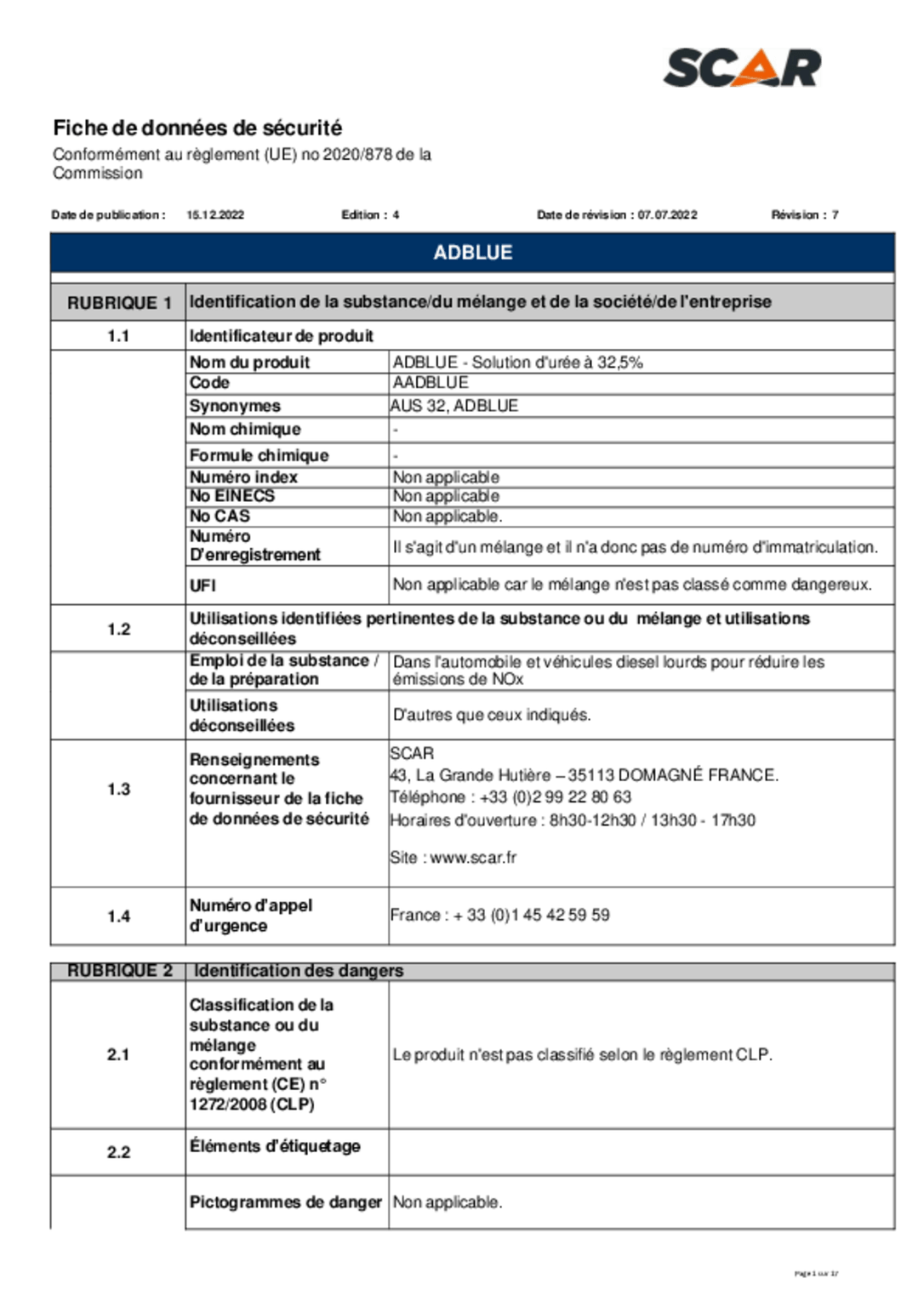 Fait l'objet de la dernière certification ISO 22241. Optimise la pulvérisation et évite la cristallisation et l'obstruction de système SCR.