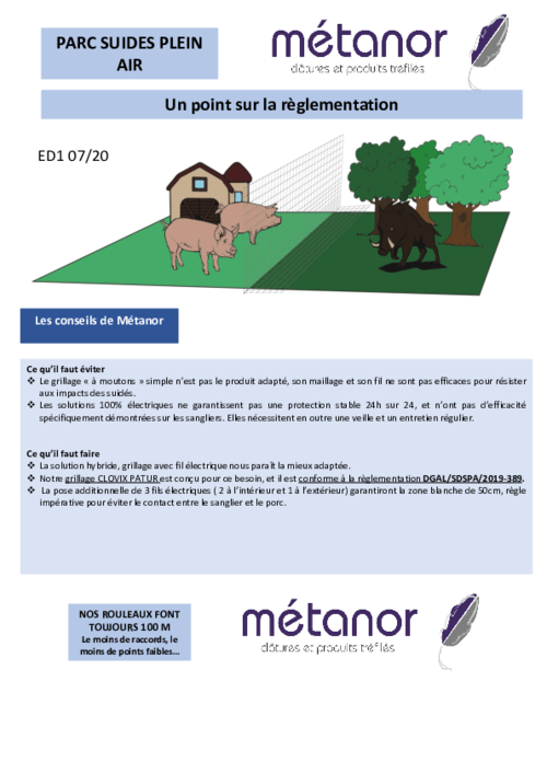 Avec retour pliable pour éviter les fouilles. Acier de première fonte revêtue d’une protection en zinc alu. Existe en H 1, 1.5, 2 m. L 100 m, rouleau mini de 100 m. Largeur maille 15 cm.