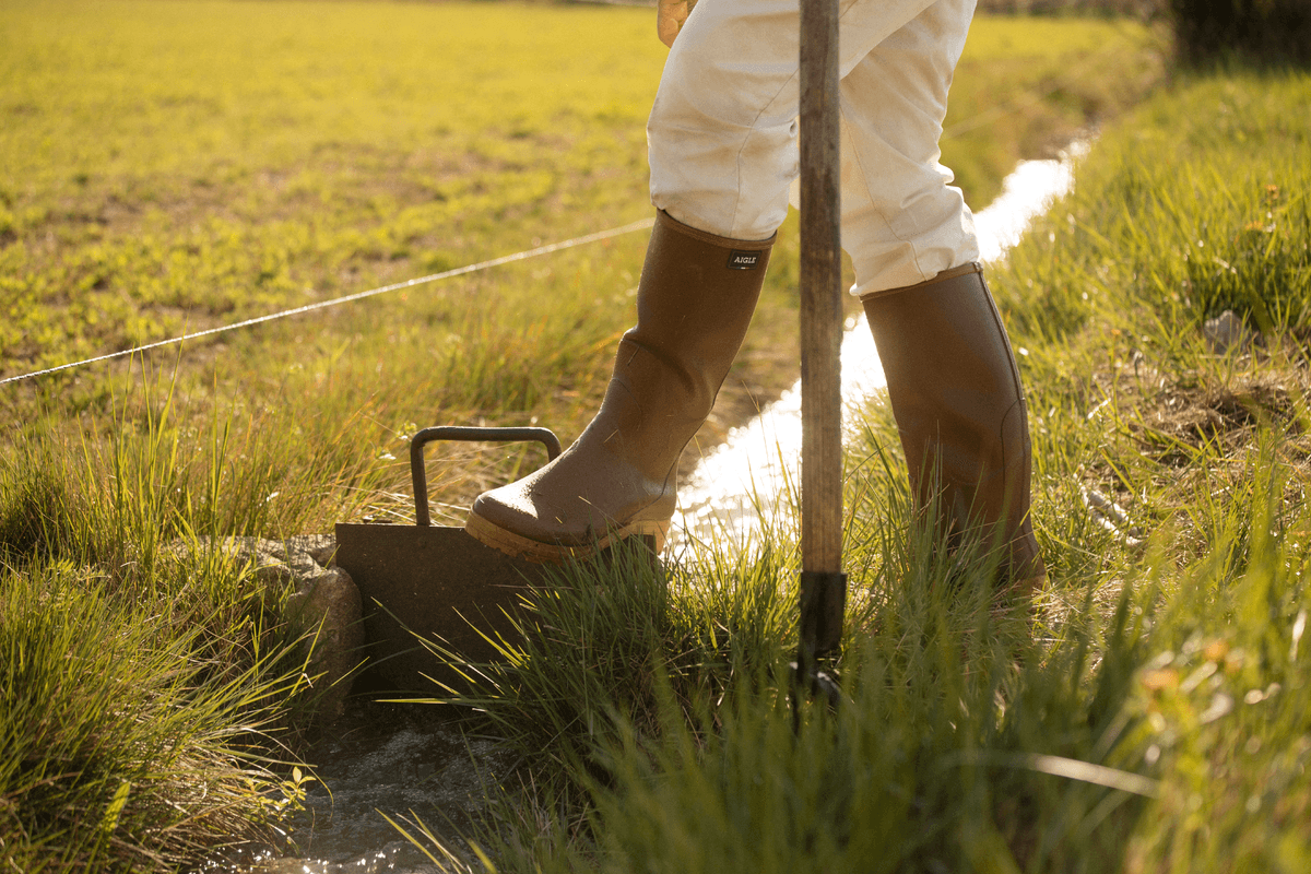 Crampons biseautés pour accrocher sur terrains meubles, et stries antiglisse pour adhérer aux surfaces lisses ou mouillées.