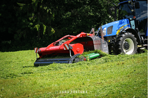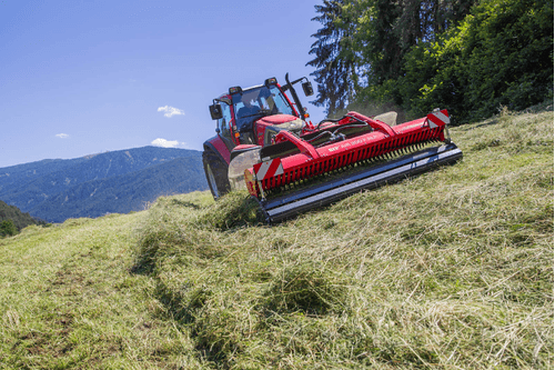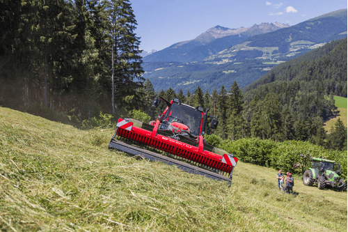 Andaineur frontale à tapis pour un fourrage garantit sur des terrains particulièrement escarpés pour un andainage sur tous types de prairie et pour un bon résultat sur luzerne, paille et résidu de récolte .Equipé d’un attelage robuste avec suspension hydropneumatique pour les changements de terrains, d’un moteur hydraulique pour la direction et la vitesse du tapis transporteur. Les andains sont placés sur le côté afin d’éviter que les roues passent pas dessus.