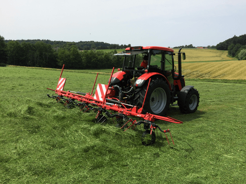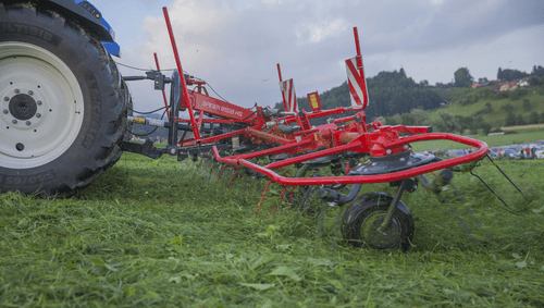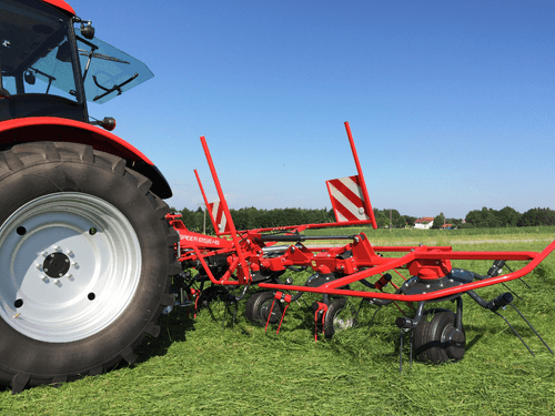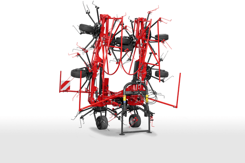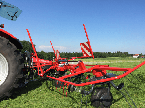 Large gamme de faneuses rotatives de la catégorie Robust équipée de 4, 6 ou 8 rotors. Performantes en assurant une distribution parfaite et uniforme du fourrage même pour des fourrages denses. Elles permettent un fanage très précis que ce soit sur les terrains pentus ou en bordure de champs notamment avec le système d’orientation hydraulique HS dont toute cette gamme est équipée de série. Pliage hydraulique des rotors pour une largeur de transport plus petite. Fourrage ramassé proprement grâce à des rotors plus petits et différentes longueurs de tiges de dents. Attelage pivotant soutenu par des stabilisateurs pour les rotors lorsque le fourrage est dense. Bras porte dents à ressorts en tubes ronds de qualité supérieure