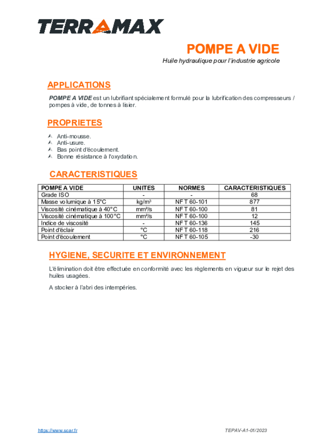 Huile hydraulique HV 46. Fluide hydraulique de hautes performances recommandé pour tous les systèmes...