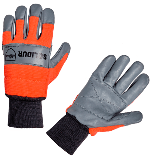 Protection de la main gauche contre les risques de coupure de tronçonneuse classe 1 jusqu'à une vitesse de tronçonneuse de 20 m/sec.