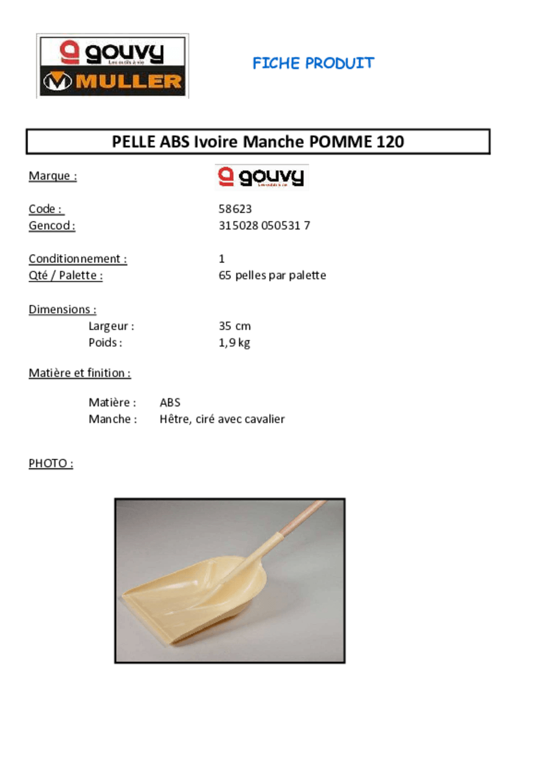 Pelle à ensilage en ABS alimentaire emmanchée. Nombreux renforts et patins anti-usure assurant une grande...