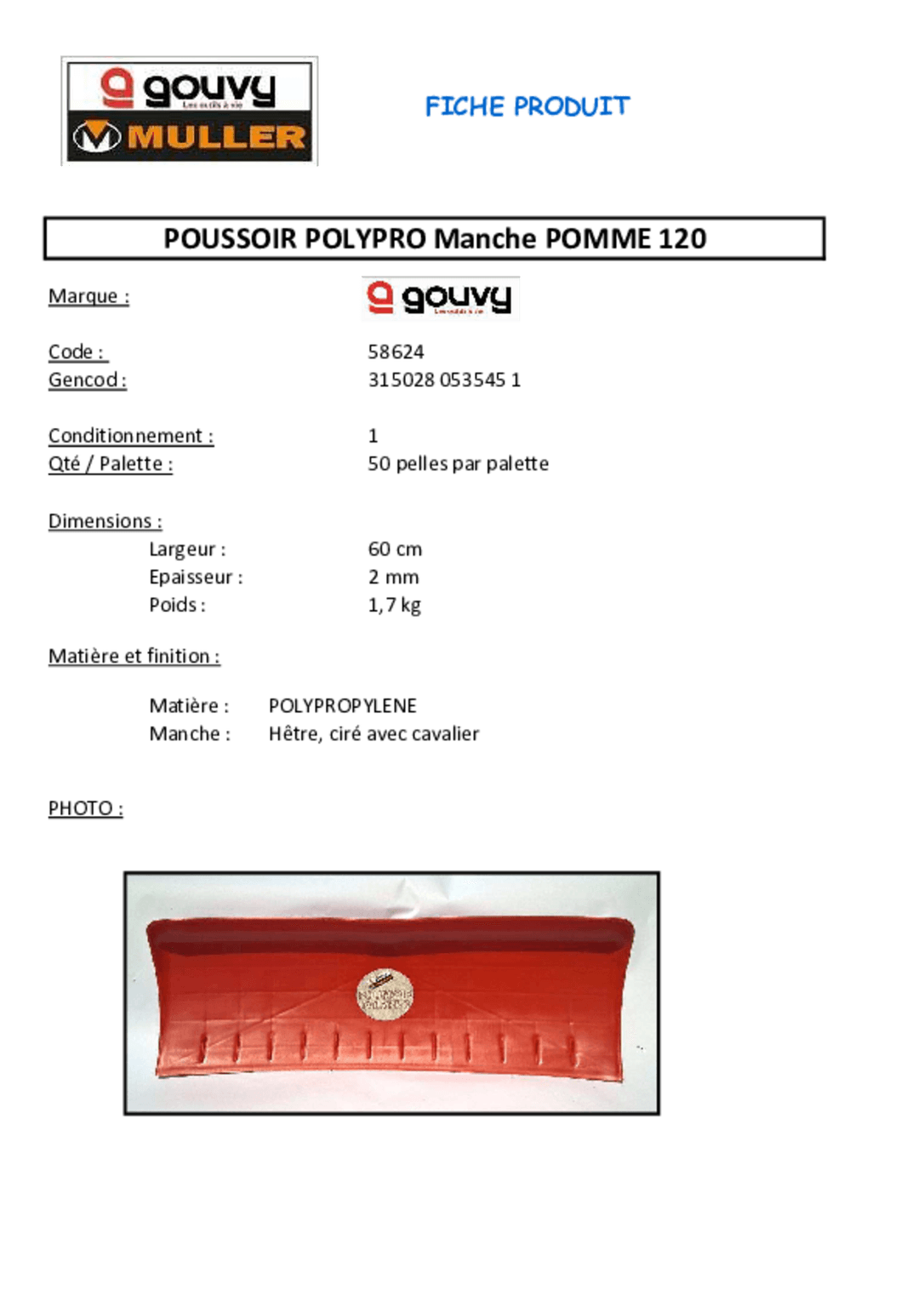 Pelle à ensilage en ABS alimentaire emmanchée. Nombreux renforts et patins anti-usure assurant une grande...
