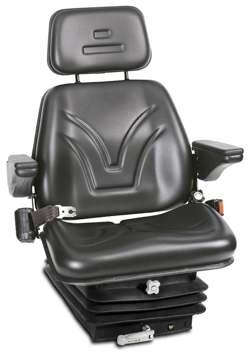 Suspension pneumatique 12 V basse fréquence. Revêtement tissu. Largeur coussin assise 530 mm. Avec accoudoirs.