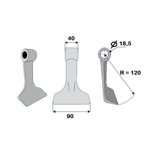 Marteau de broyeur. Longueur 1 : 140 mm. Longueur 2 : 40 mm. Alésage : 16,5 mm. Rayon : 95 mm. Poids...