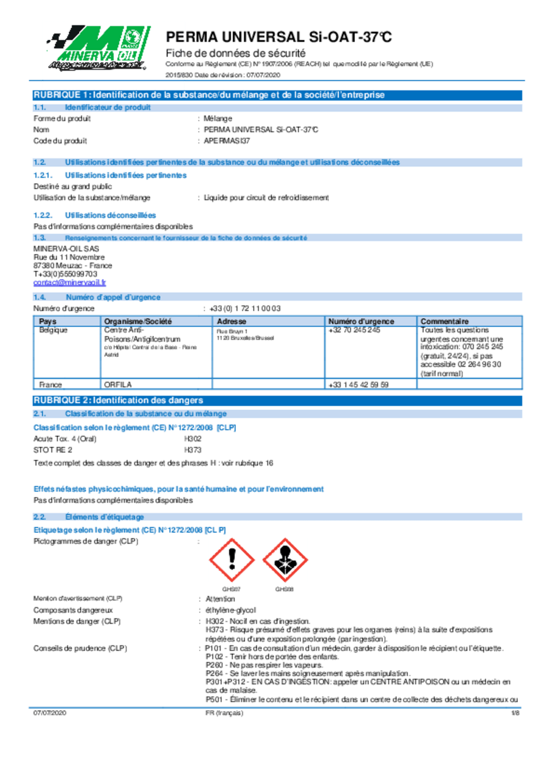 Prêt à l'emploi. Résiste au gel jusqu'à : - 37 °C. NFR15-601 Haute protection 4 saisons. Pouvoir anti-corrosion....