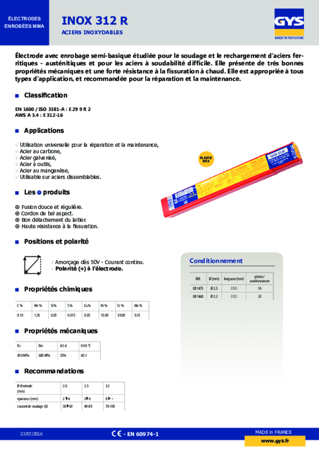 A enrobage semi-basique. Pour les aciers difficilement soudables.